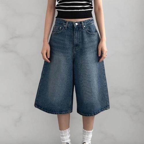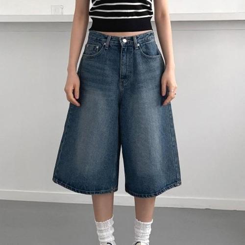 [다잇템][다잇템] 여자 넓은 칠부 에이라인 워싱 데님버뮤다팬츠 청반바지_20890622_588872