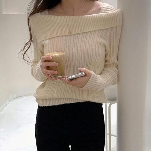 [엄지척]여자 오프숄더 골지 니트 스퀘어넥 연말 파티룩 2색_19804320_667501