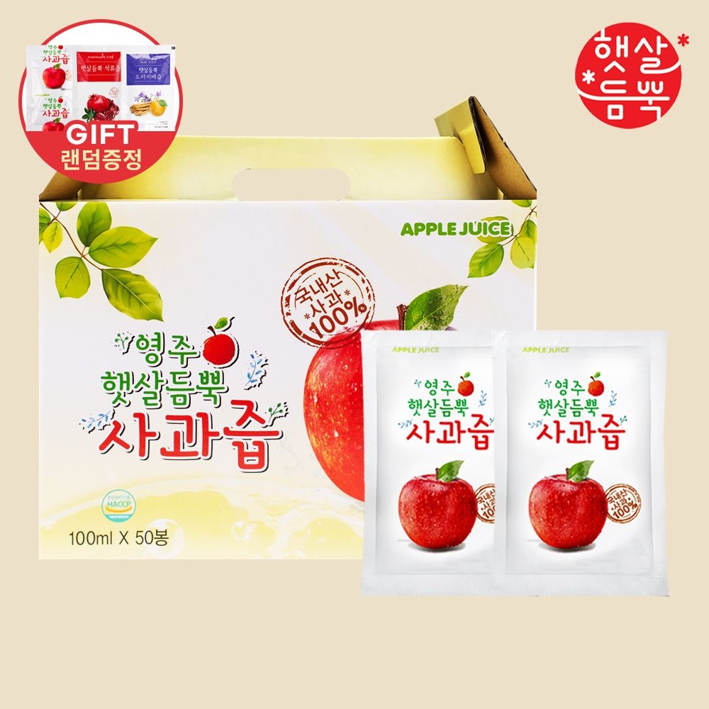 영주 햇살듬뿍 사과즙 사과주스 100mlx50포 세트+2포 추가 증정