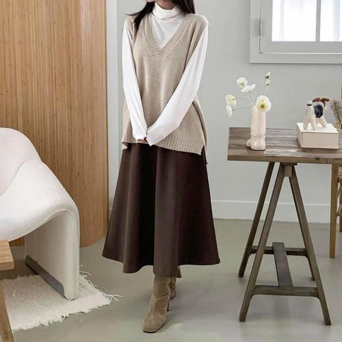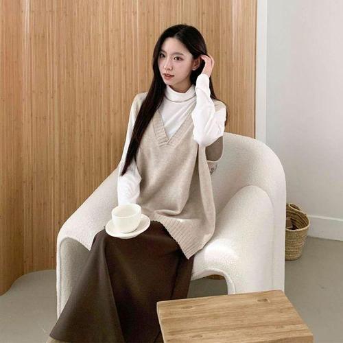 [옷자락]여자 톤다운컬러 브이넥 옆트임 니트 베스트