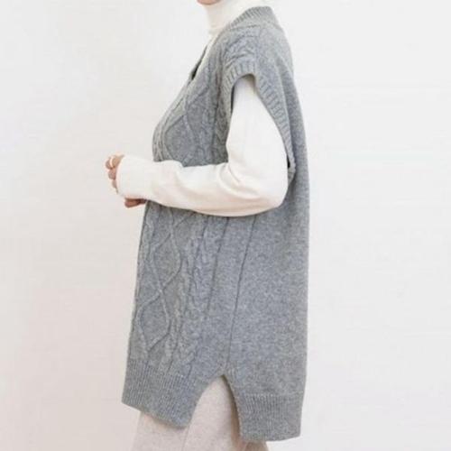[엄지척]여성 V넥 옆트임 롱 니트 조끼 오버핏 옆트임 베스트_19680900_667501