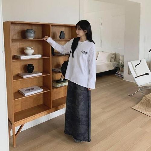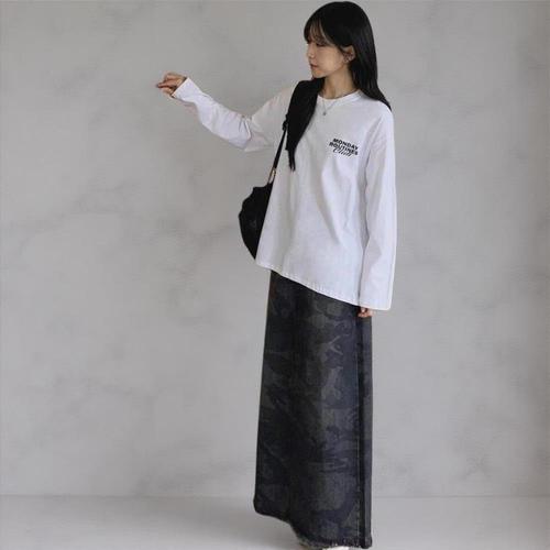 [옷자락]여성 캐주얼 코튼 옆트임 루즈핏 긴팔 티셔츠