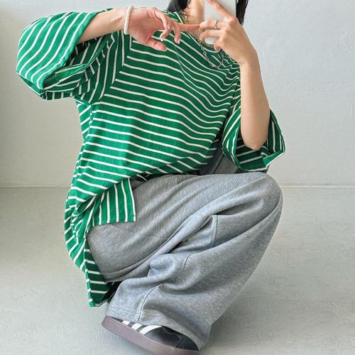 [미라클세븐]여성 빅사이즈 스트라이프 옆트임 7부 힙커버 티셔츠