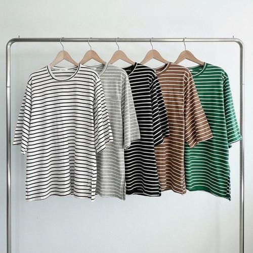 [미라클세븐]여성 빅사이즈 힙커버 스트라이프 옆트임 7부 티셔츠
