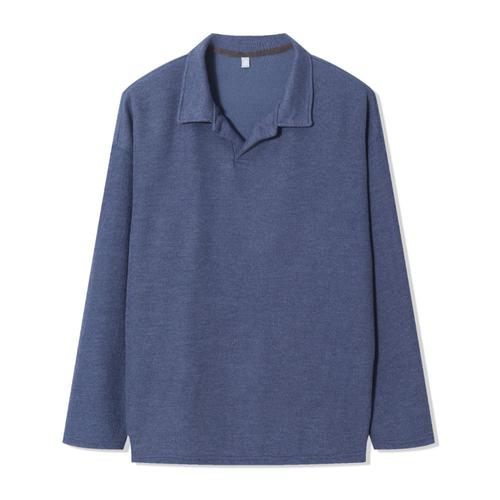 남자 가을 오픈 카라넥 옆트임 긴팔 니트티 AC-KN-Q039-네이비
