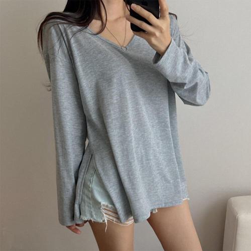 [미라클세븐]여성 브이넥 기본 긴팔 레이어드 티셔츠 옆트임
