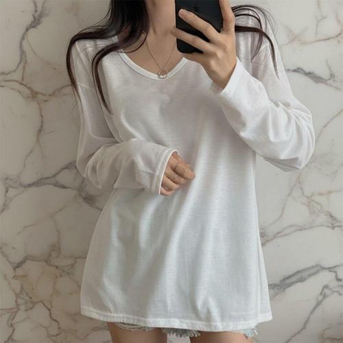 [미라클세븐]여성 브이넥 레이어드 긴팔 티셔츠 옆트임 기본 무지티