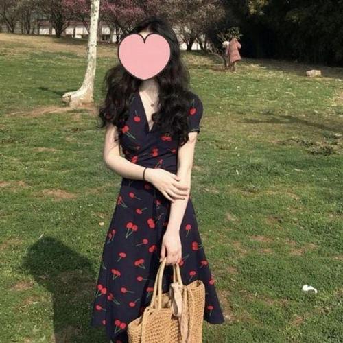 [에이치플러스몰]이지 예쁜체리 랩 미니드레스