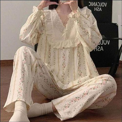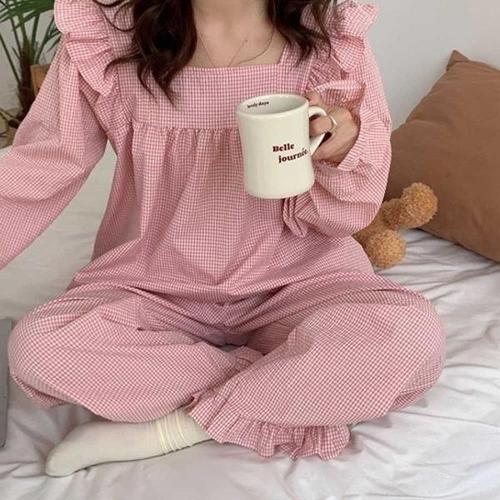 [셀러허브_여성트랜드패션]ONM 여자 예쁜잠옷 세트 긴팔 프릴 홈웨어 파자마 상