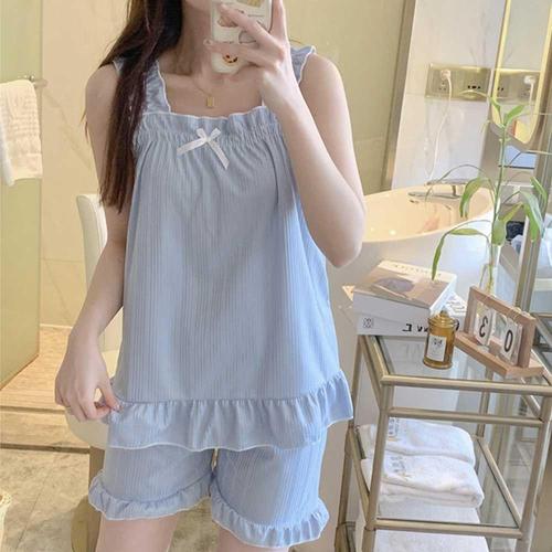 [셀럽하우스]여자 UPDV4074 예쁜 세트 여름 홈웨어 반바지 잠옷 나시 코디