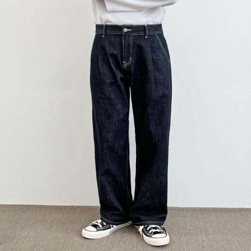 [셀럽하우스]남성 SVKE8946 논페이드 진청팬츠 핏 예쁜 핀턱 와이드 청바지