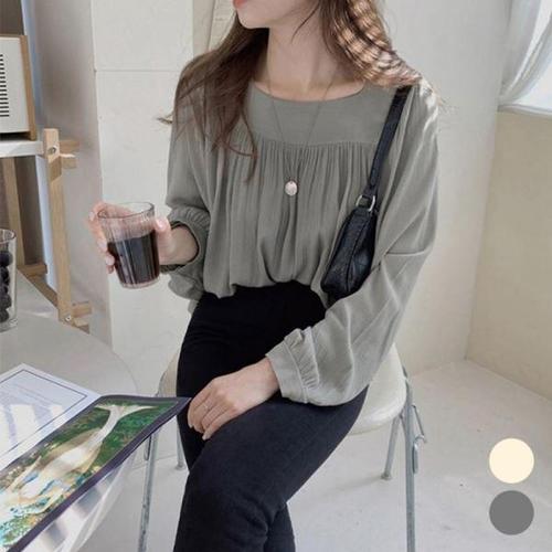 [오노마] ONM 셔링 주름 포인트 여자 예쁜 쇄골 넥라인 블라우스 (S10896701)