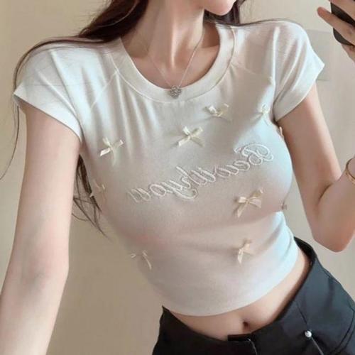 라운드넥예쁜 리본장식 크롭반팔티 시그니처 WFK1XOA