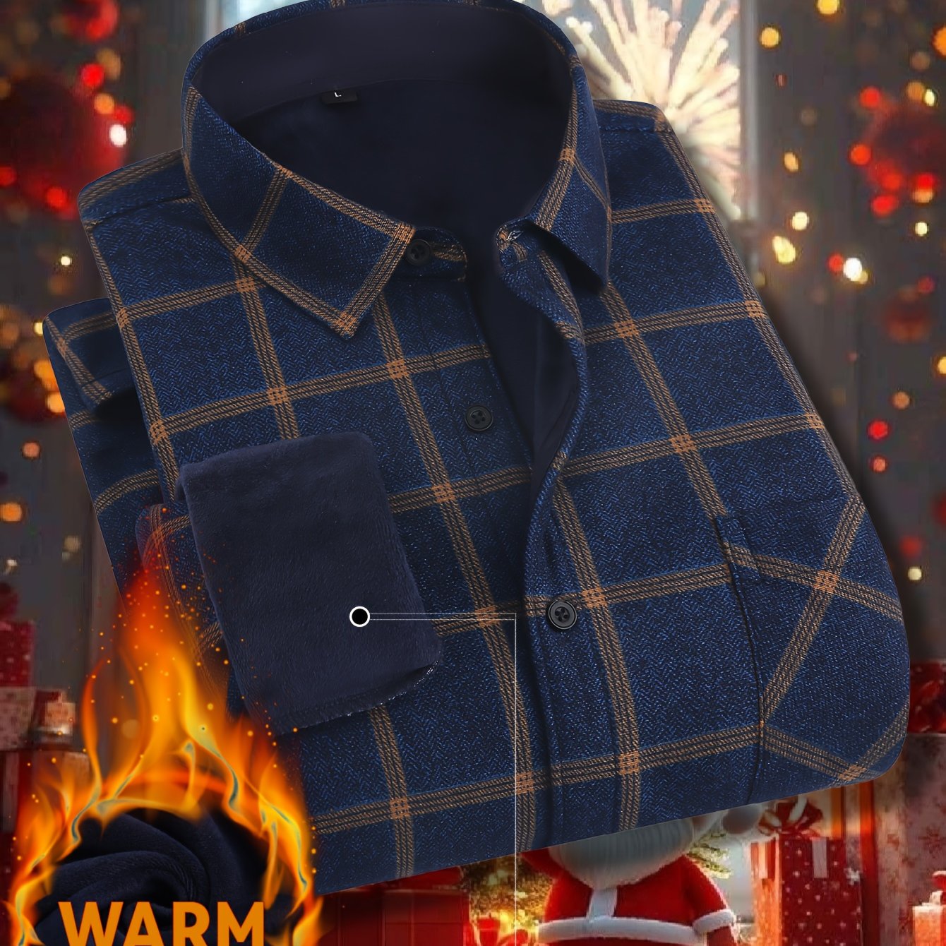 TEMU 남성용 체크 플란넬 셔츠 재킷 - 플리스 안감 보온 오버셔츠, 체크 패턴, 따뜻한 겨울 코트, 버튼 앞면 클로저