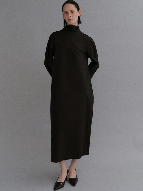 오드 DRO285 와이드 윙카라 배색 라인 더블버튼 원피스 코트