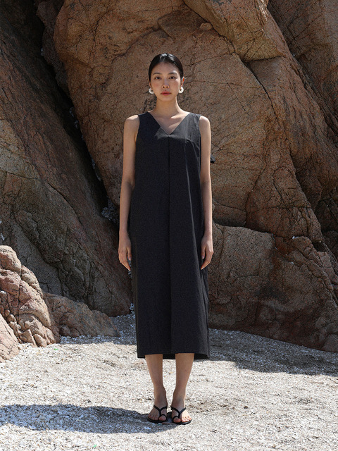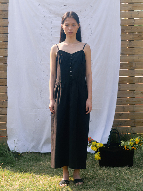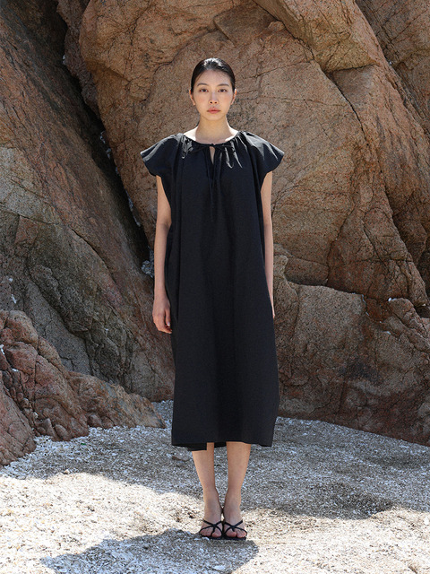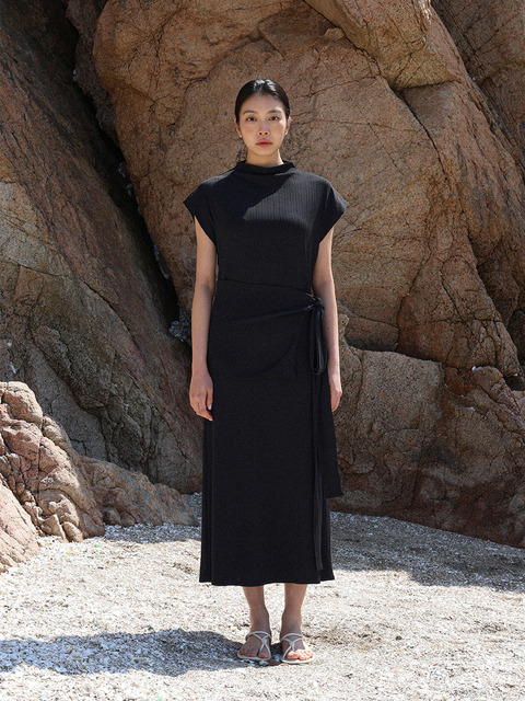 [베이오드] 코튼 스트링 슬리브리스 드레스_블랙