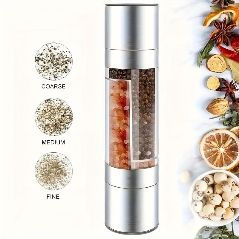 TEMU 가정용 듀얼 챔버 후추 그라인더, 휴대용 고품질 메탈 마감, 조절 가능한 굵기 - 재사용 가능한 수동 향신료 분쇄기, 바베큐, 피크닉, 캠핑, 하이킹 및 가정 주방에 적합, 크리스마스 선물로 완벽.
