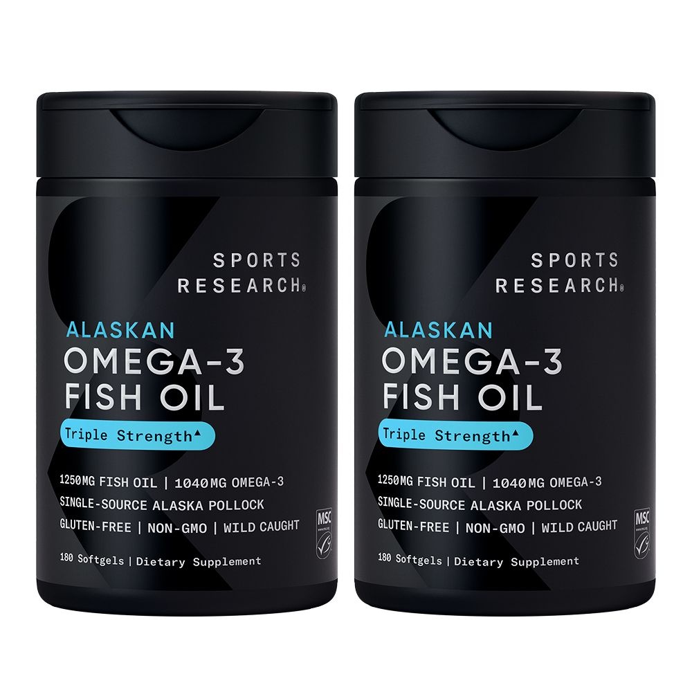 스포츠리서치 야생포획 알래스카산 명태 1040mg 오메가-3 피쉬 오일 트리플 스트렝스 소프트젤, 180정, 2개