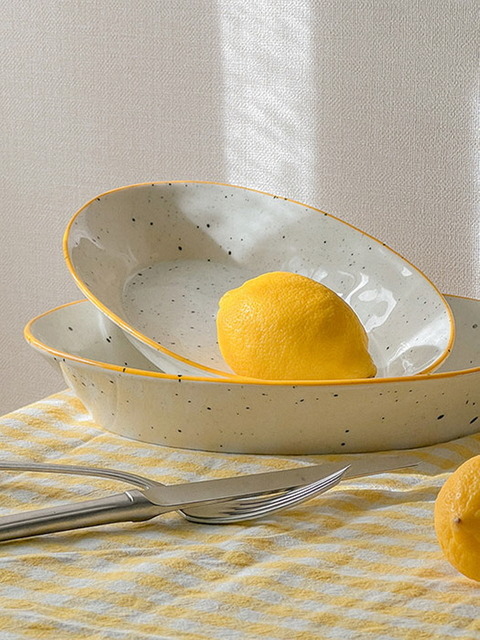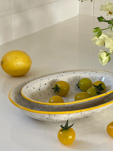 [에포크] 에포크 - 썬라인 엘로우 림 블랙 점박이 패턴 오발 플레이트 2종