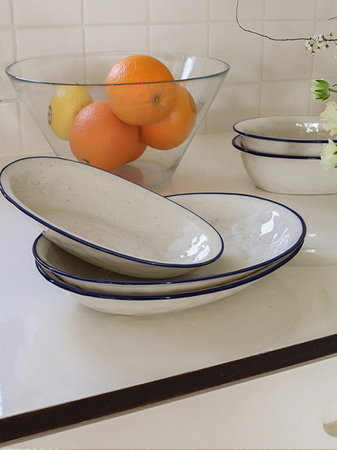 뉴욕 레트로 타원접시 오발 양식접시 도자기 그릇, 타원접시, 1개