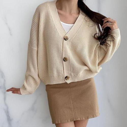 [옷자락] 여성 니트 브이넥 오버사이즈 간절기 데일리 가디건