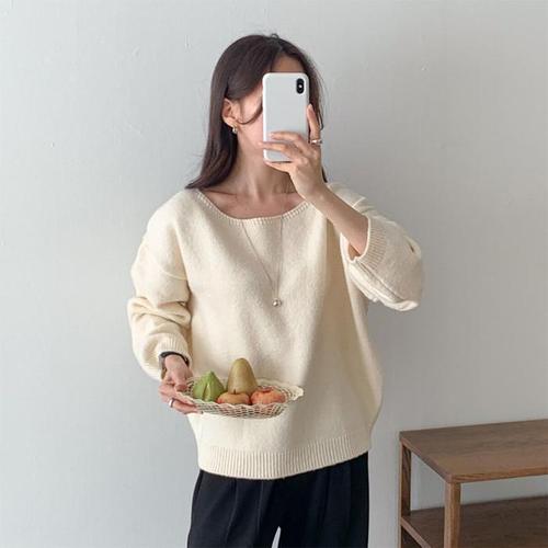[신상오픈런]여성 보트넥 오버사이즈 부클 니트 스웨터 봄 비비드 색상 (45899568)