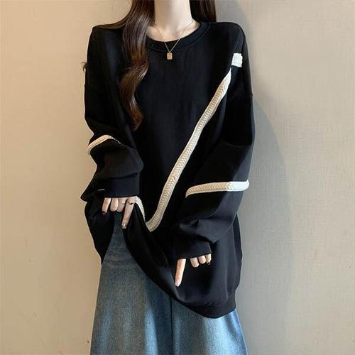 [모노무드]LMO 컴포트룩 데일리룩 우먼 오버사이즈 절개시즌 긴팔니트