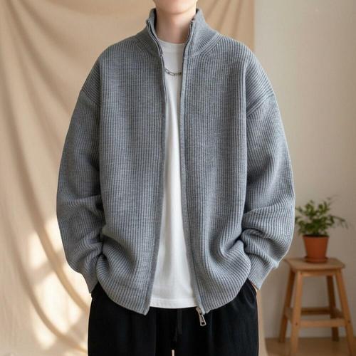 [옷자락]남성 골지 오버사이즈 스탠드넥 집업 니트 자켓