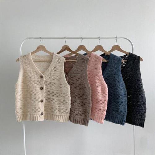 [셀러허브_여성트랜드패션]ONM 7칼라 가디간 니트조끼 조끼 여름조끼 짜임 오버핏