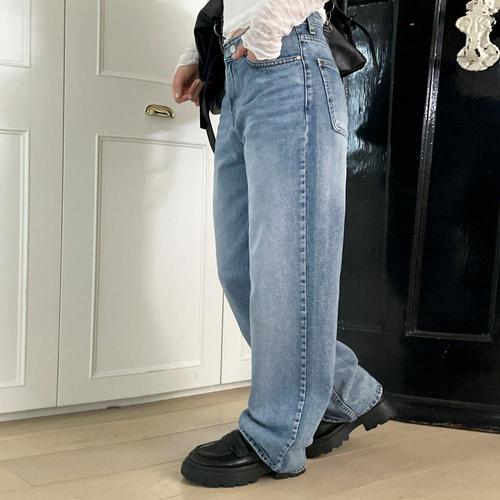 [옷자락] 여자 와이드 루즈핏 연청 하이웨이스트 데님 팬츠