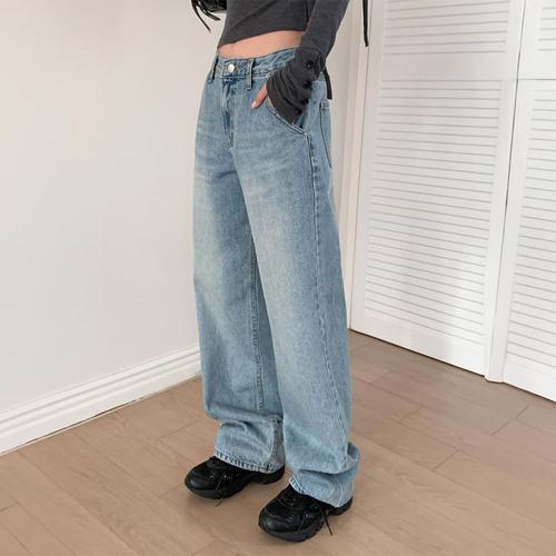 [옷자락] 여자 데일리 빈티지 워싱 루즈핏 데님 팬츠