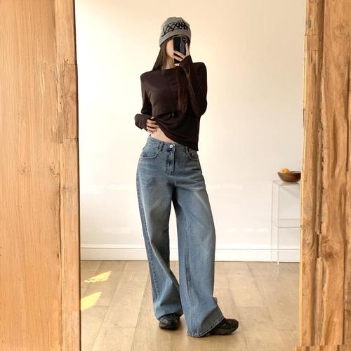 [옷자락] 여자 와이드 루즈핏 하이웨이스트 데님 청바지
