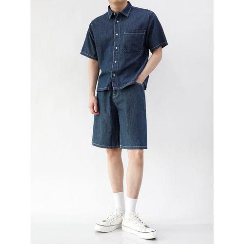 [해리슨]오버핏 반팔 데님셔츠 +데님 버뮤다 팬츠 셋업 WSPC1475