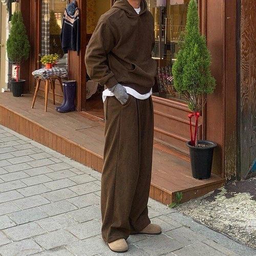 [올겨울 교복템] 양털 골덴 후드 핀턱와이드 세트 오버핏 기모 트레이닝SET 데일리 남녀공용