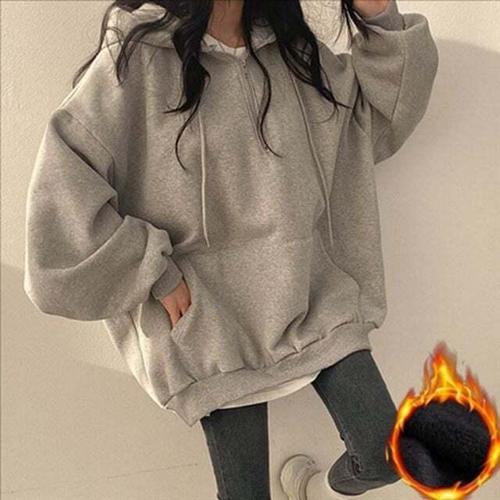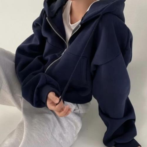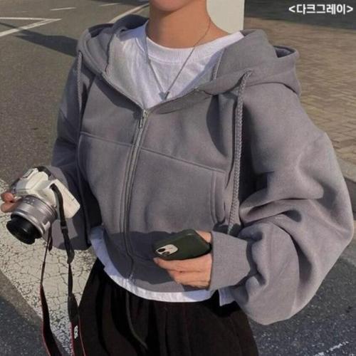 [신상오픈런]여성 기모 후드 집업 세미 크롭 부드러운 오버핏 (46120520)