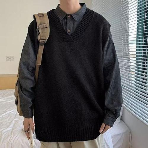 [리빌모아]남자 루즈핏 베이직 무지 니트 베스트 DMS-VEA-SISBT21-블랙