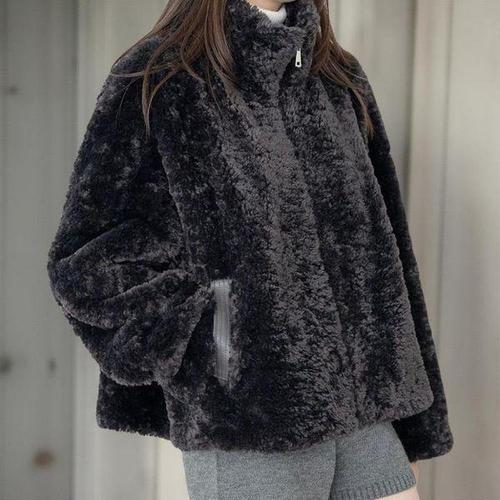 [신상오픈런]여성 겨울 하이넥 소프트퍼 오버핏 가죽 집업 자켓