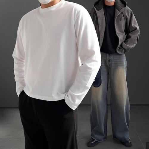 [2팩] 긴팔티 오버핏 남자 레이어드 빅사이즈 무지 티셔츠