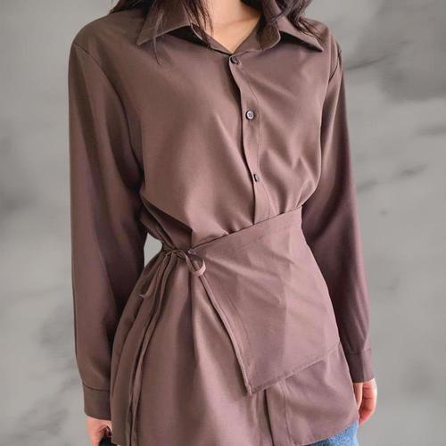 [옷자락] 여성 독특 언발란스 랩 레이어드 루즈핏 긴팔 블라우스
