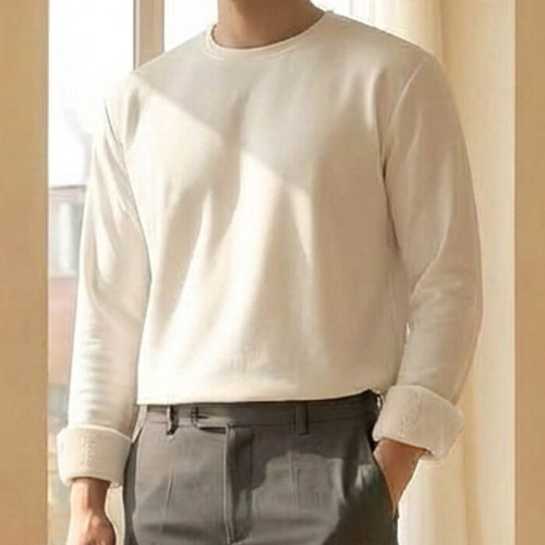 남성 기모 페이크 레이어드 캐시미어 스웨터 오버핏니트 긴팔티셔츠 SL
