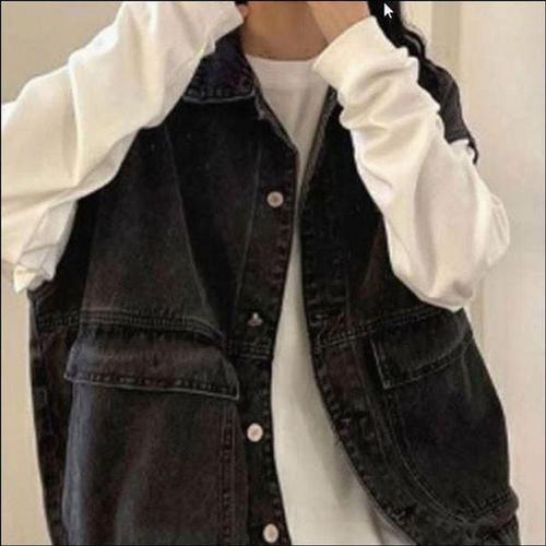 [셀러허브_여성트랜드패션]Rly 여성 흑청 블랙 데님조끼 레이어드 오버핏 청쪼끼