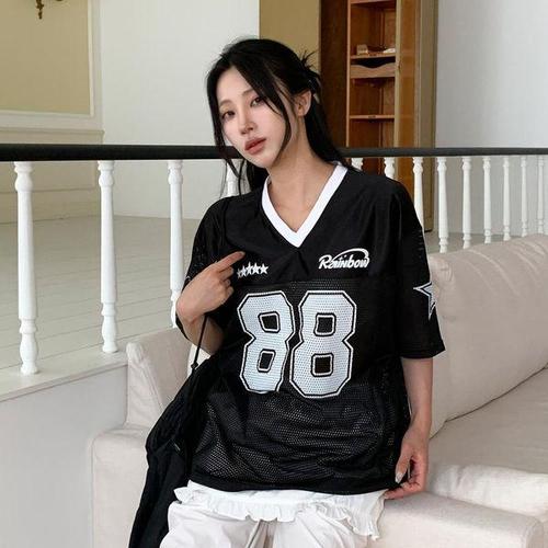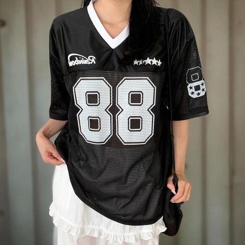 [시크블랙]초르밍 브이넥 88 레터링 매쉬 오버핏 반팔티