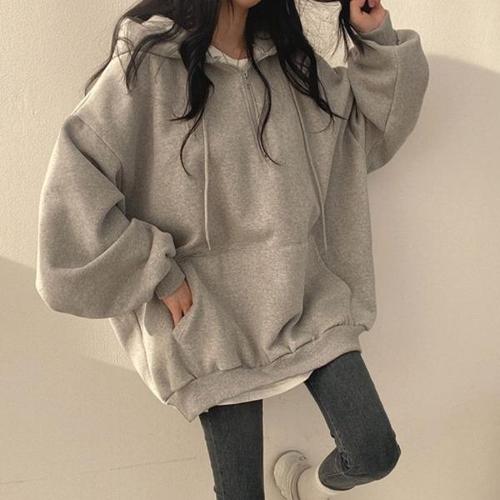 [엄지척]여자 반집업 후드티 베이직 지퍼후디 오버핏후드 무지_19613735_667501