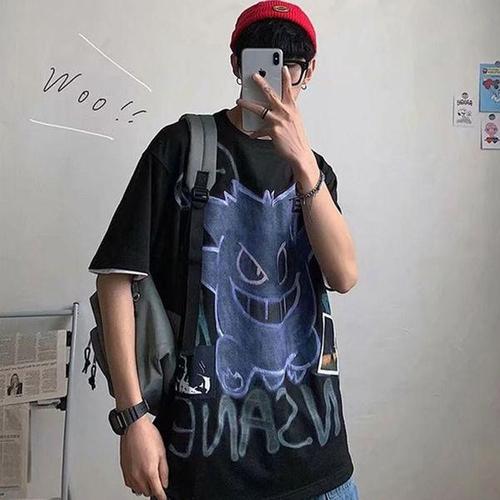 [에이치플러스몰]남성 데빌 프린팅 여름 반팔티 1P 오버핏 일상 티셔츠