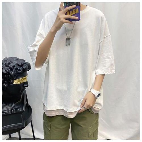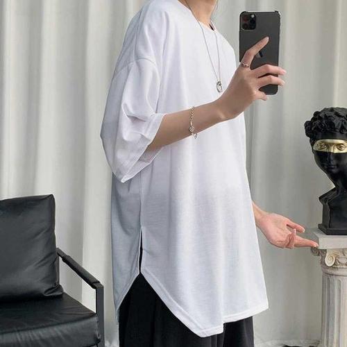 [에이치플러스몰]남자 트임 반팔티 레이어드 패션 오버핏 7부 티셔츠