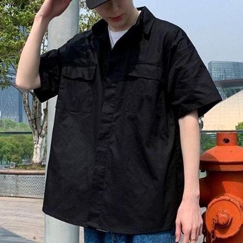 [에이치플러스몰]남자 반팔 남방 셔츠 캐주얼 카라티 오버핏 2컬러 남자반팔셔츠