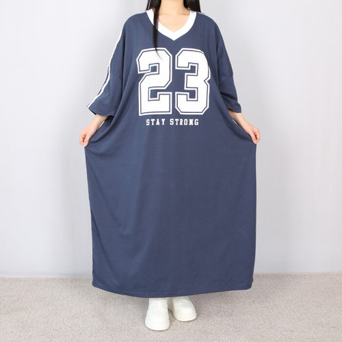 파라노말샵 / (빅사이즈) 스트롱 배색 브이넥 오버핏 반팔 롱 원피