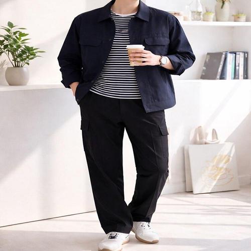 남성 데님 댄디한멋짐 청자켓 카고 코트 봄가을 루즈핏 재킷 OOTD3