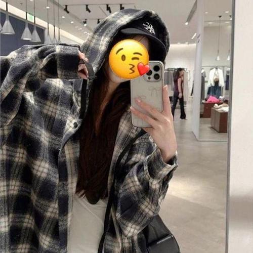 [셀러허브_여성트랜드패션]Rly 오버핏 체크후드 셔츠자켓 스트릿 하이틴 데일리룩