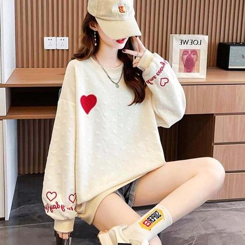 [셀럽하우스]여자 XALF5289 러블리 루즈핏 맨투맨 엠보 하트 긴팔 상의 3색